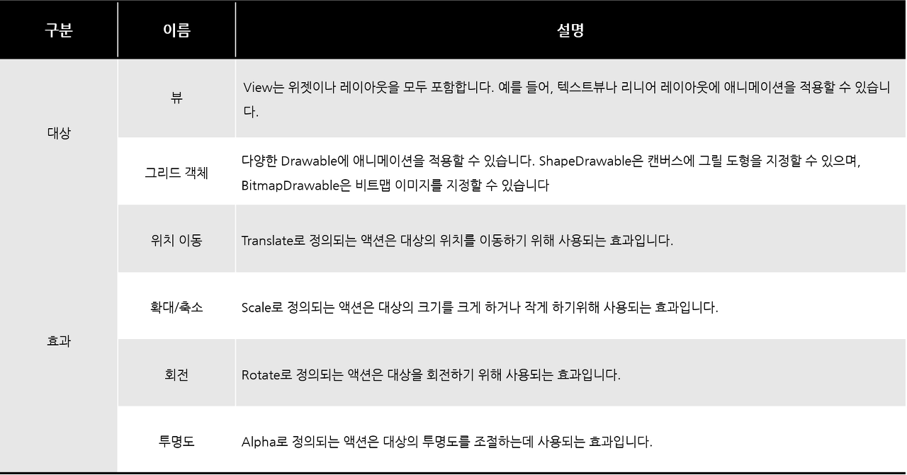 이러한 방식으로 Animation 을 동작시키는 것이 Tweened Animation입니다.